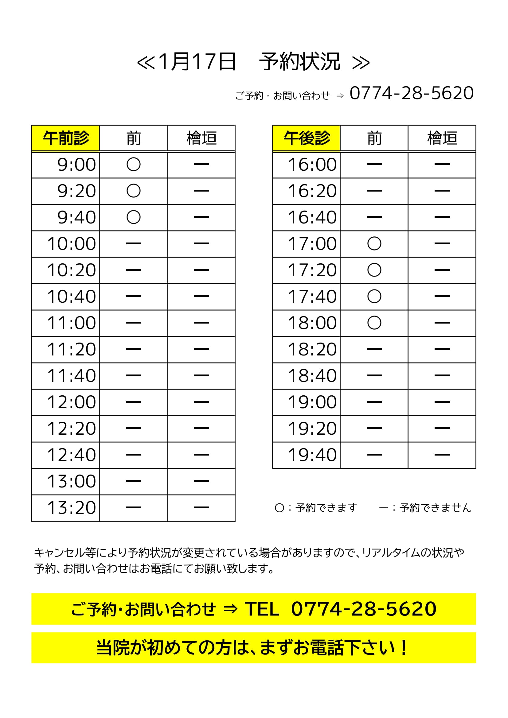 本日の予約状況